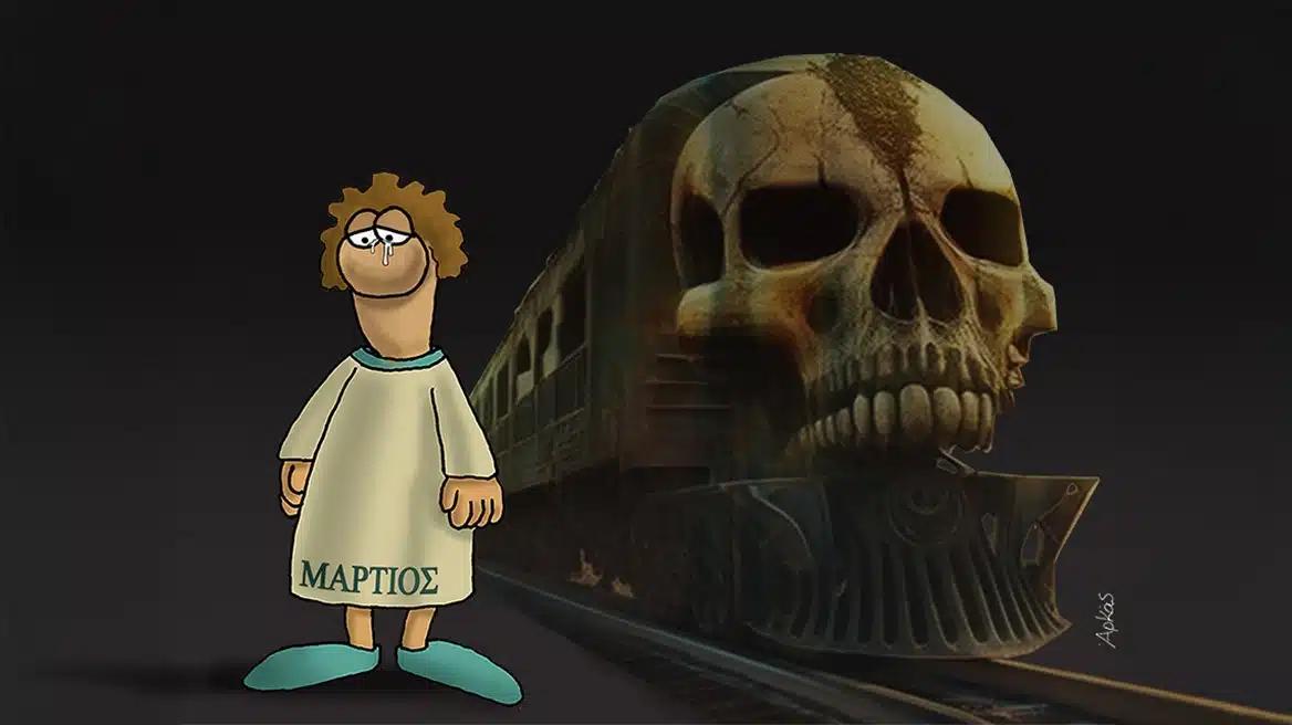 «Γιατί ο Αρκάς δεν λέει τίποτα για τα Τέμπη, ενώ για το Μάτι μιλούσε;» – Η απάντηση του σκιτσογράφου