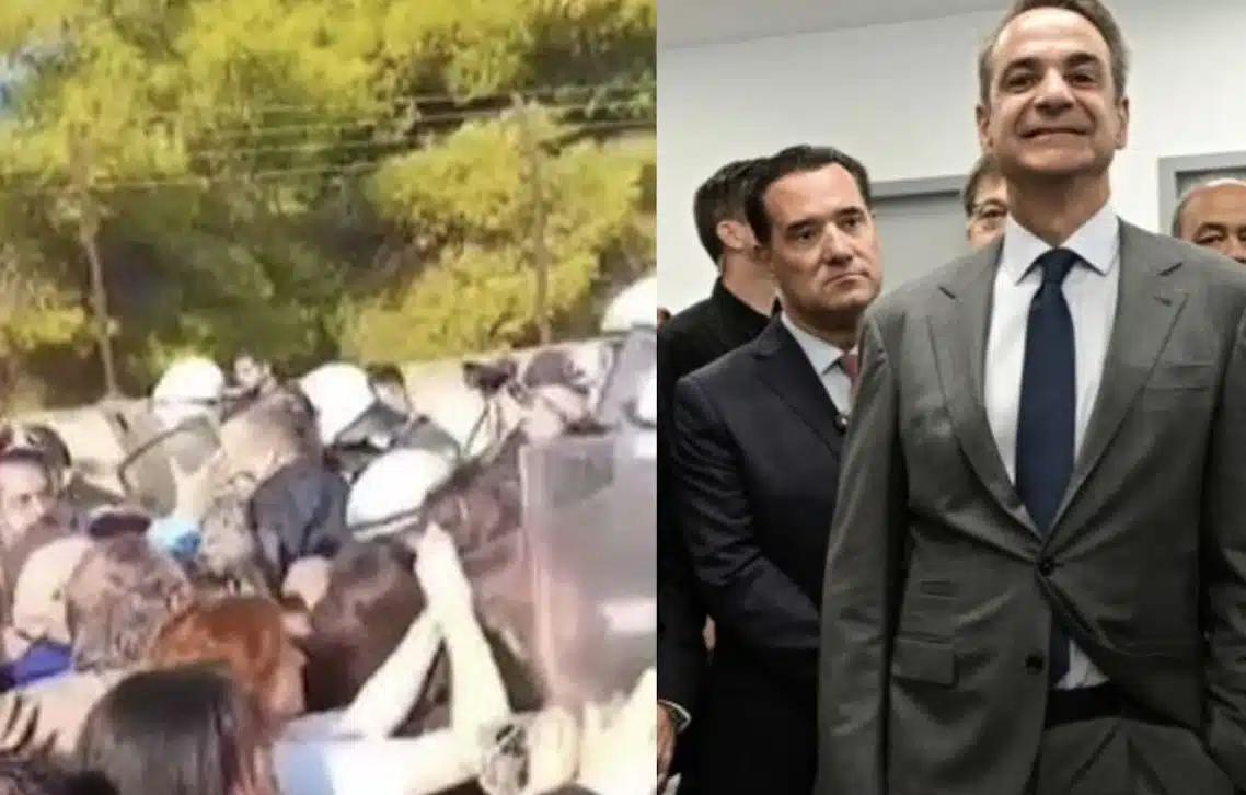 Ένταση έξω από το «Αττικόν» κατά την επίσκεψη Μητσοτάκη – Γεωργιάδη