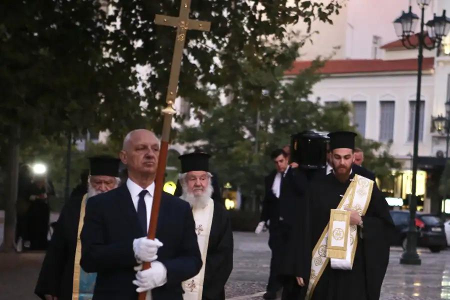 Λίγο πριν από τις 7:30 το πρωί του Σαββάτου μεταφέρθηκε στο παρεκκλήσι της Μητρόπολης Αθηνών η σορός του Διονύση Σαββόπουλου, προκειμένου να τεθεί σε λαϊκό προσκύνημα, το οποίο θα διαρκέσει από τις 8:30 έως τις 11:30 π.μ.