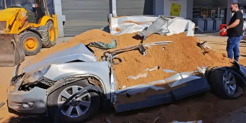 Ειδικότερα, όπως φαίνεται στις φωτογραφίες που δημοσιεύθηκαν στην ομάδα του Facebook, Forum 3Β, ο οδηγός της νταλίκας φαίνεται πως έχασε τον έλεγχο του οχήματος, με αποτέλεσμα αυτό να ανατραπεί και να πέσει πάνω στο αυτοκίνητο.