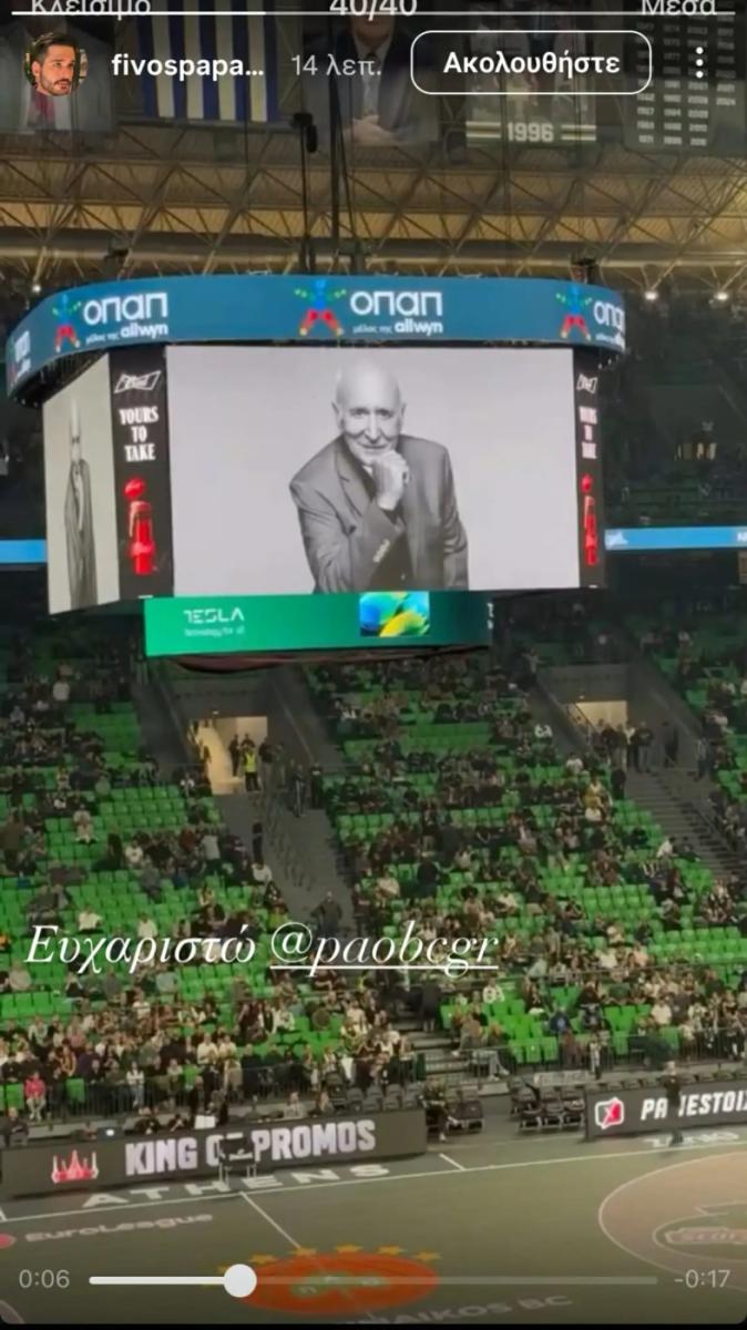 Ο Φοίβος Παπαδάκης μοιράστηκε μια φωτογραφία από το στάδιο στα Instagram Stories του και ευχαρίστησε δημόσια την ομάδα του «τριφυλλιού» για τη σκέψη της.