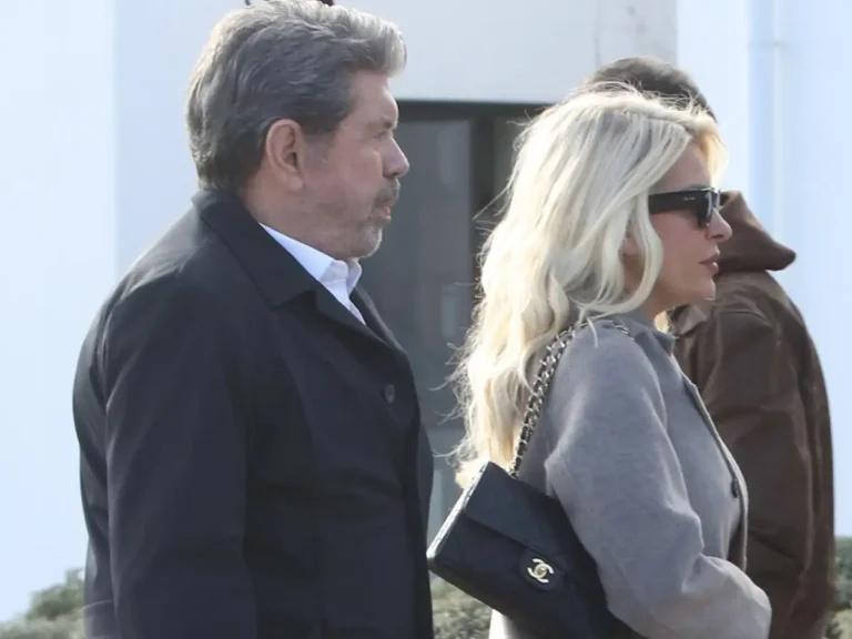 Ελένη Μενεγάκη και Γιάννης Λάτσιος έφτασαν μαζί στο Αποτεφρωτήριο Ριτσώνας για την κηδεία του Γιώργου Παπαδάκη.