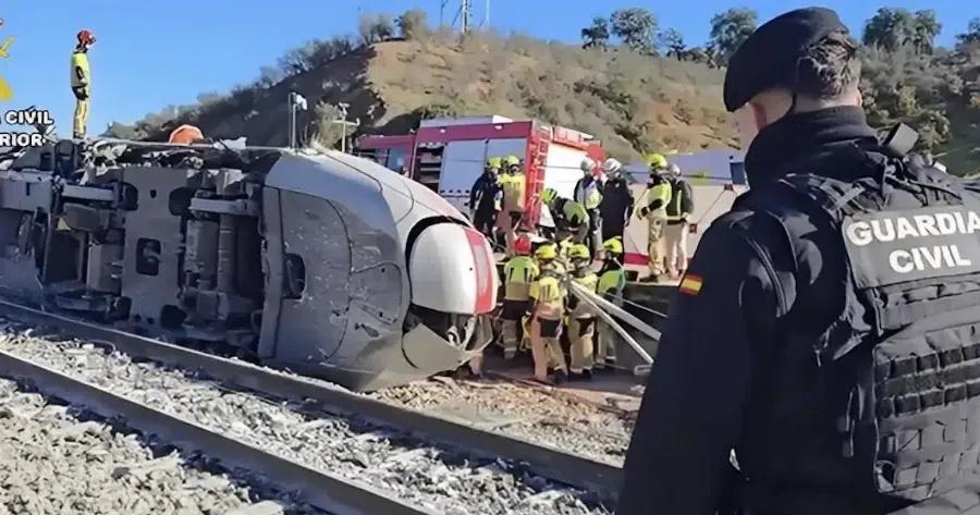 Σύμφωνα με τις αρχικές εκτιμήσεις, τα πρώτα βαγόνια του τρένου της ιδιωτικής ισπανικής εταιρείας Iryo πέρασαν πάνω από το κενό στις ράγες χωρίς να εκτροχιαστούν. Ωστόσο, το όγδοο και τελευταίο βαγόνι βγήκε από την τροχιά, συμπαρασύροντας και το έβδομο καθώς και το έκτο βαγόνι, γεγονός που οδήγησε στην τραγωδία.