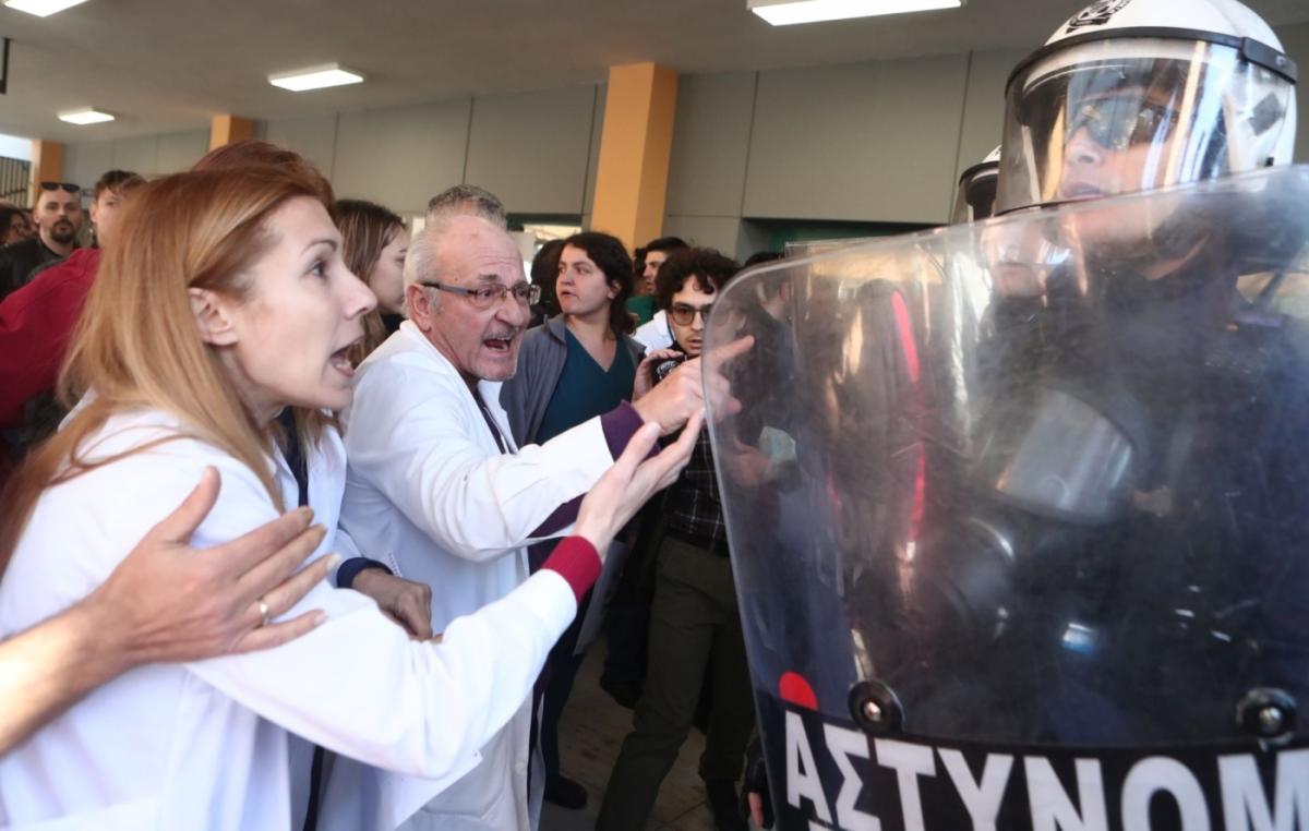 Κάποια στιγμή επικράτησε μεγάλη ένταση με αποτέλεσμα οι αστυνομικοί να χτυπήσουν εργαζομένους!