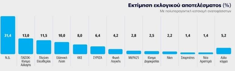 Δημοσκόπηση Marc: 31,4% η Νέα Δημοκρατία, 13% το ΠΑΣΟΚ, 11,5% η Πλεύση Ελευθερίας – 32,6% για τον Κυριάκο Μητσοτάκη