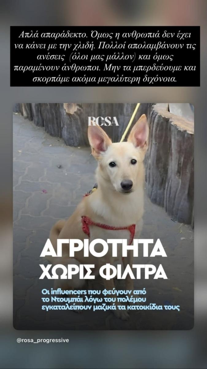 Με μια νέα ανάρτηση, η Εριέττα Κούρκουλου επιδιώκει να σταματήσει τον κοινωνικό διχασμό για το ζήτημα της ευθανασίας ζώων στο Ντουμπάι!