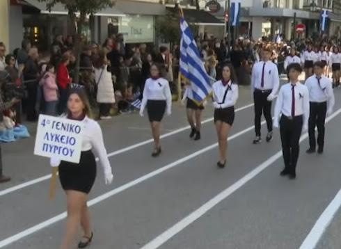 Φορτισμένη συναισθηματικά ήταν η φετινή μαθητική παρέλαση στον Πύργο, καθώς οι μαθητές του 4ου Λυκείου επέλεξαν να συμμετάσχουν φορώντας μαύρες κορδέλες, ως ένδειξη πένθους και τιμής για τον συμμαθητή τους, Ασημάκη Διονυσόπουλο.