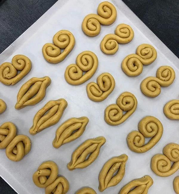 Αφήστε κενό ανάμεσα στα κουλουράκια όταν τα τοποθετείτε στις λαμαρίνες, γιατί φουσκώνουν αρκετά και μπορεί να κολλήσουν μεταξύ τους.