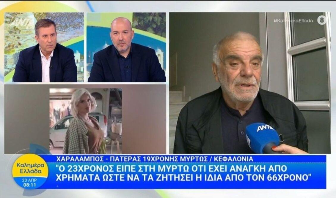 Ανείπωτος πόνος επικρατεί στην Κεφαλονιά, λίγες ημέρες μετά τον θάνατο της 19χρονης Μυρτούς, η οποία βρέθηκε νεκρή την Τρίτη του Πάσχα στο Αργοστόλι. Την ίδια ώρα, πολλά είναι τα ερωτήματα αναφορικά με τις συνθήκες κάτω από τις οποίες η 19χρονη έχασε τη ζωή της, όσο και για τα άτομα που ενδεχομένως να εμπλέκονται στον θάνατό της. Στο πλαίσιο αυτό, ο πατέρας της 19χρονης μίλησε στον ΑΝΤ1 και την εκπομπή «Καλημέρα Ελλάδα», αναφέροντας τα εξής: